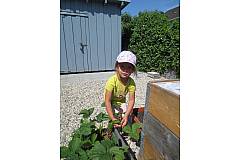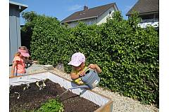 Für die Kinder ist es toll zu erfahren wie aus kleinen Pflanzen oder Samenkörner Tomaten, Radieschen und anderes wächst. Das alles möchten wir aber nicht alleine naschen. Gerne darf jeder vorbeikommen und auch etwas naschen oder uns am Wochenende und in den Ferien beim gießen unterstützen.