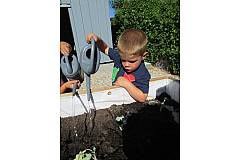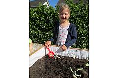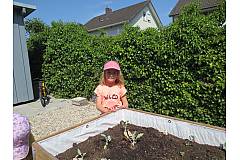 Wir haben Erdbeeren, Tomaten, Karotten, Radieschen... angepflanzt und eingesät. Nun gießen wir jeden Tag und naschen auch schon fleißig.
